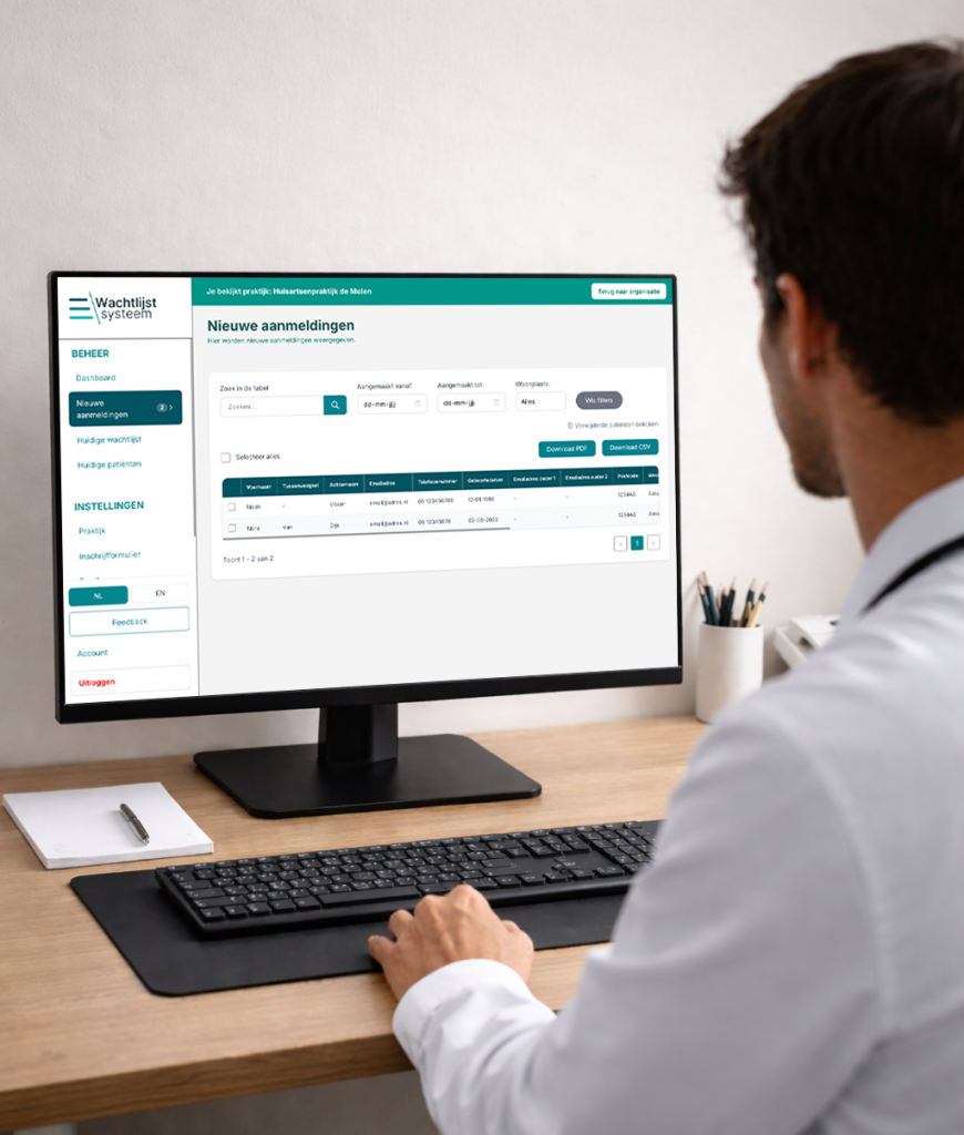 Wachtlijstsysteem is ontwikkeld voor zorginstellingen die professioneel en zorgvuldig omgaan met inschrijvingen en wachtlijsten. Het systeem wordt gebruikt door huisartsenpraktijken, GGZ-instellingen, VVT-organisaties, tandartsen, fysiotherapeuten en intramurale zorginstellingen.